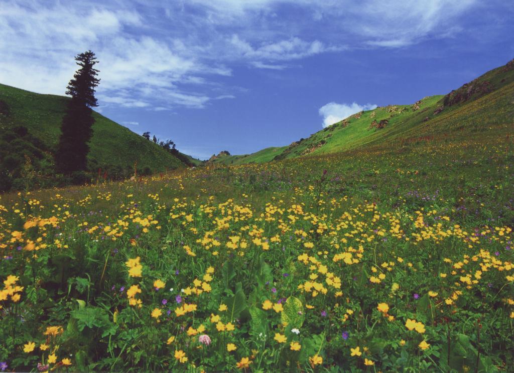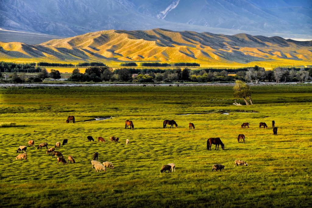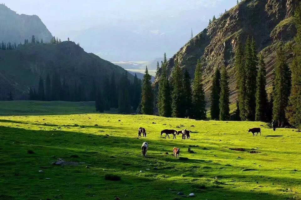 哈夏草原景区,是国家AAA级景区,位于温泉县安格里格镇至赛里木湖公路附近的天山余脉别珍套山中低山,距离县城约30公里,面积约50平方公里。南临赛里木湖风景名胜区,西邻鄂托克赛尔(天泉)景区,海拔2500米左右。“哈夏”系蒙古语,意为“围栏”,因周边群山环绕,中间地势凹陷,好似草原围栏而得名。景区自然资源丰富,水源充足,周边山腰地带遍布的云杉、圆柏及爬山松等树种,组成自然森林,景区内及周边区域,还有马鹿、野猪、狐狸、狼、旱獭、野兔等野生动物。人与自然同呼吸,人与动物共生存。每年6月初,百花争艳,蝶舞蜂鸣,牧草茂盛,牛羊遍地,毡房点点,炊烟袅袅,奶茶飘香,让人流连忘返。远眺景区风光,蓝天碧草,松翠柏绿,山峦重叠,沟壑纵横,云杉密布,如梦如幻,美不胜收。如果用五彩缤纷和人间天堂之类的词语来形容哈夏草原,不会言过其实。在哈夏草原游玩,既可以饱览草原风光,又可以做客牧家,品尝富有民族传统特色的各类食品。在哈夏草原游玩,让心静下来,用自然的节奏,体验浓郁的民族风情,体验返璞归真的简单和美好!