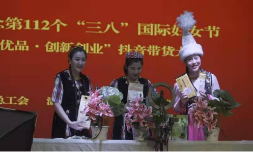 为发挥电商在改善民生、扩大就业、促进消费等方面的重要作用,温泉县妇联、总工会联合举办了2022年“博凤优品•创新创业”抖音带货大赛,以赛代训培养电商人才,助推乡村振兴和经济发展。近日,在温泉县博格达尔镇幸福社区内,一场别开生面的直播带货比赛正在进行,来自各乡镇场的8支代表队,现场展示了他们新掌握的创业、增收技巧“抖音直播带货”,他们三人一组,面对直播镜头,模拟日常在直播间带货的产品介绍和粉丝互动等过程。虽然只是模拟展示,但是各位选手卖力介绍、宣传手中的产品,井然有序与直播间的粉丝互动的架势有模有样,让在场的人感觉自己就是在刷抖音看直播。