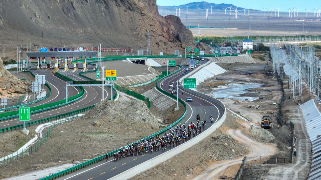选手经过博乐东站后进入G219线