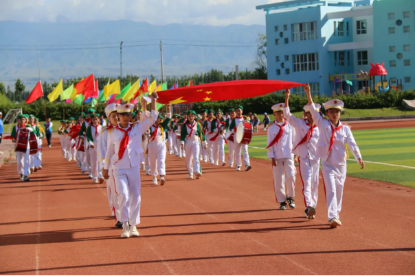 温泉县哈日布呼中心小学开幕式上,各班级的同学们身着整齐的校服,手持五彩斑斓的气球,伴随着激昂的音乐,迈着矫健的步伐,精神抖擞地走过主席台。赛场上,运动员们挥洒着汗水,全力以赴地投入到各项比赛中。无论是短跑、长跑、跳远、跳高还是投掷项目,都展现出了顽强拼搏的精神和对胜利的渴望。