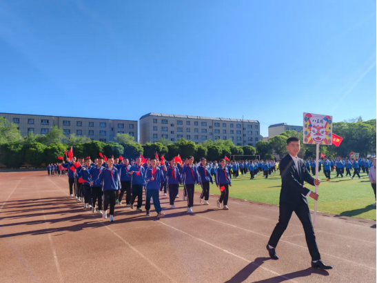 伴随着欢快激昂的《运动员进行曲》,温泉县初级中学国旗护卫队、校旗方队、裁判员代表队、各班级方队等方阵,迈着铿锵有力的步伐,神采飞扬地走过主席台,用激情嘹亮的口号展现出温泉县青少年激情澎湃、朝气蓬勃的青春风采。