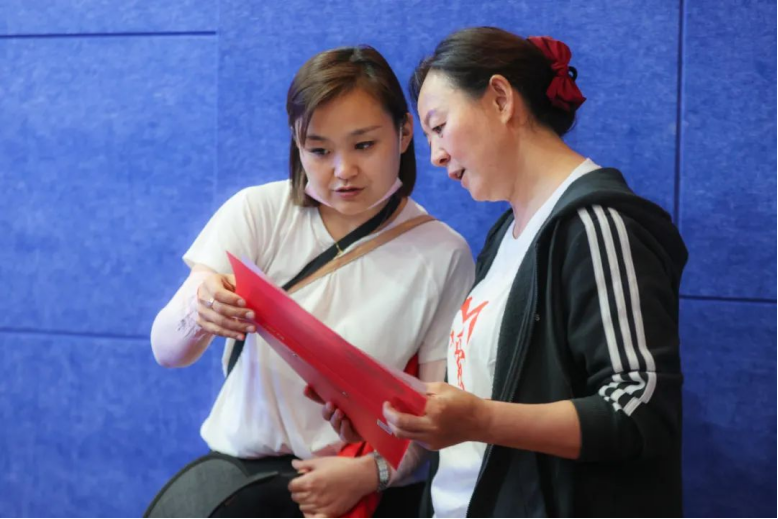 温泉县五馆一中心,张娥与老师探讨研学课程细节。