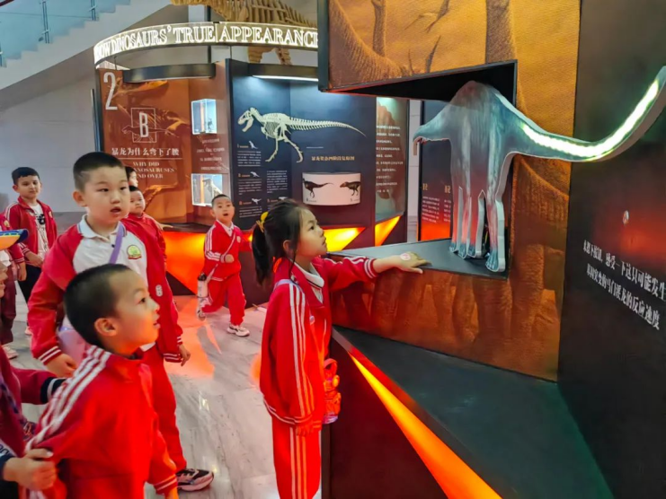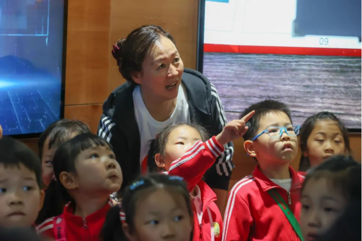 张娥带领小朋友参观温泉县五馆一中心。