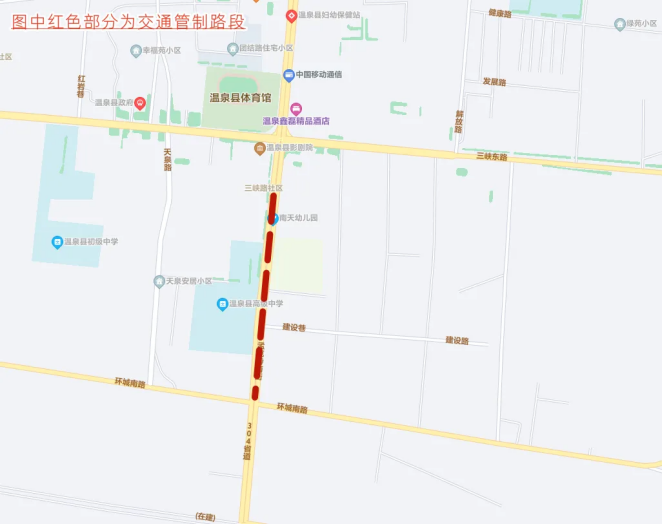 交通限制路段孟克特南街(学校门口路段) 三峡社区至温泉县汽车客运站