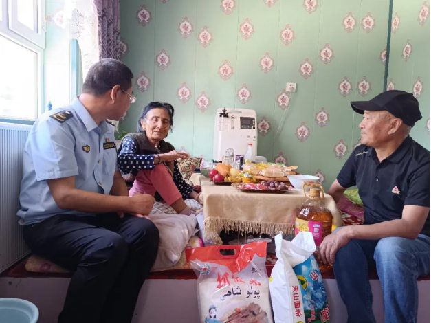 6月8日,温泉县市场监督管理局联合安格里格镇苏明托哈村开展“民族团结一家亲”主题共建活动,向全村老人送上了节日的慰问和祝福,切实把党的关怀落到实处。(王秀荣供稿)