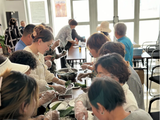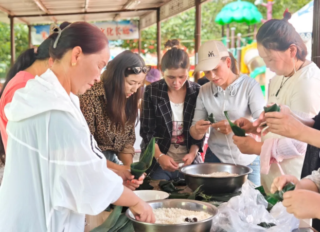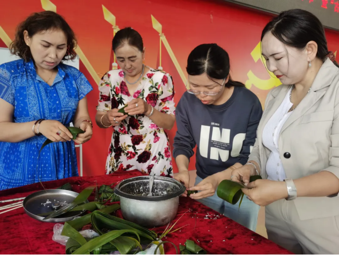 6月6日,温泉县哈日布呼镇红十月社区联合包联单位国家统计局温泉调查队共同开展“粽情端午‘艾’飘香 民族团结感党恩”民族团结一家亲联谊活动。大家围在一起包粽子,欢声笑语聊端午、话习俗,感受传统文化魅力,进一步坚定了“文化自信”。(张雪供稿)