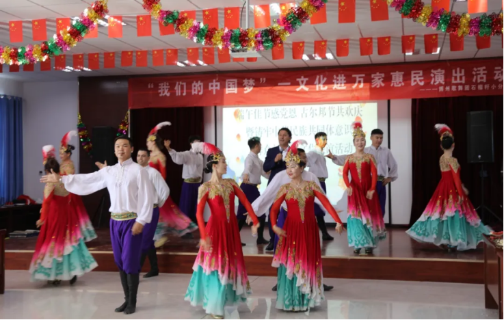 6月6日,温泉县哈日布呼镇新布呼村以铸牢中华民族共同体意识为主线,由博州政府办公室、温泉县委宣传部、温泉县邮储银行、中国人寿保险公司温泉支公司等一同邀请博州歌舞团石榴籽小分队开展“端午佳节感恩党·古尔邦节共欢庆”暨铸牢中华民族共同体意识“群众村晚”文化联谊活动,为全村各族群众送上家门口的文化盛宴。(冰丹供稿)