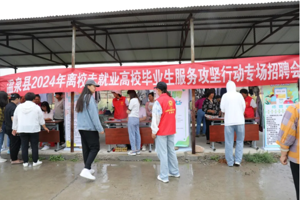 “为满足高校毕业生就业需求,我们人社局汇聚市场化社会岗位资源,利用各乡镇场集市日举办招聘会,旨在扩大招聘区域范围和影响力,为招聘、求职双方带来更好更便捷的服务,满足城乡失业就业人员需求。”温泉县人力资源服务中心主任刘洋介绍说。
