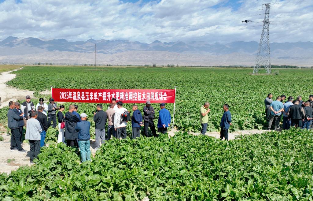 为推动农业高质量发展,加速智慧农业技术落地,9月2日,温泉县农业农村局组织各乡镇场种植户代表在安格里格镇参加2025年玉米单产提升水肥精准调控技术田间现场观摩会。