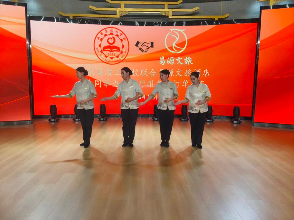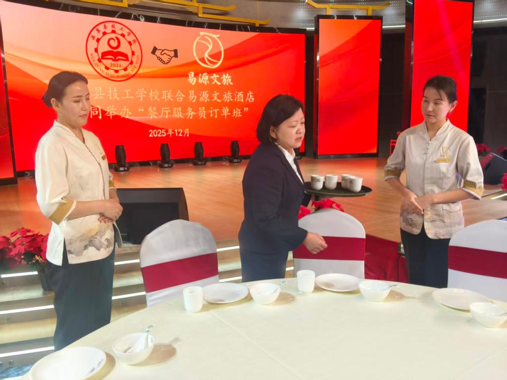 温泉县技工学校深入贯彻落实旅游强县战略,精准对接文旅服务产业人才需求,促进农牧民稳定就业,与即将开业易源文旅酒店首次合作,共同开办“餐厅服务员订单班”,推动形成"岗位需求+技能培训+技能评价+就业服务"四位一体项目化培训模式,深化校企合作,助力地方产业发展。