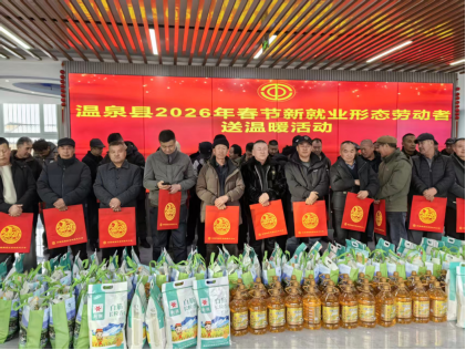 为深入贯彻党的二十届四中全会精神和习近平总书记关于新业态、新就业群体党建工作重要论述,加强交通运输新就业群体关心关爱工作,扎实做好春节期间交通运输领域民生保障。近期,温泉县交通运输局联合县总工会,开展“新春送暖 同心同行”慰问活动。