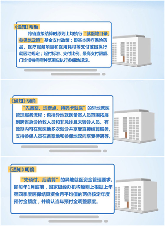 二是选定点。参保人员完成异地就医备案后,在备案地开通的所有跨省联网定点医疗机构均可享受住院费用跨省直接结算服务;门诊就医时,需先了解参保地异地就医管理规定,如果参保地要求参保人员选择一定数量或在指定级别的跨省联网定点医药机构就医购药的,按照参保地规定执行。