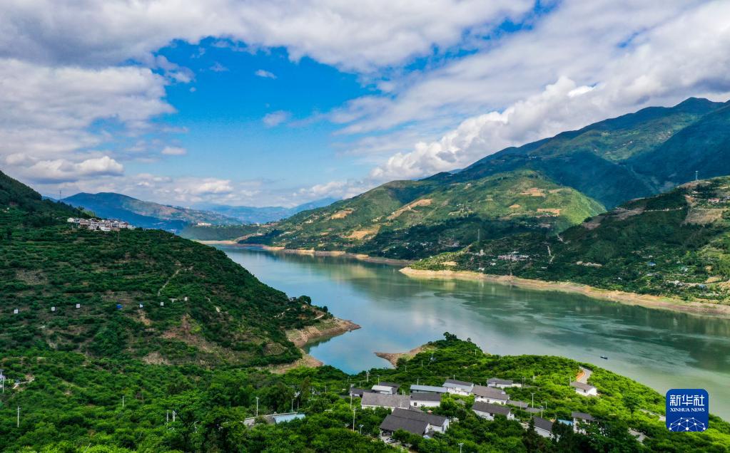 这是2022年5月19日拍摄的长江巫山段曲尺乡一带景色(无人机照片)。新华社记者 王全超 摄