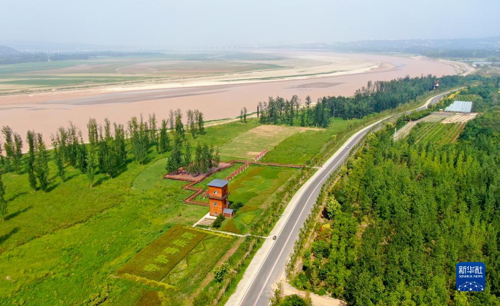 这是2022年8月10日在河南省三门峡市拍摄的黄河生态廊道(无人机照片)。新华社记者 郝源 摄
