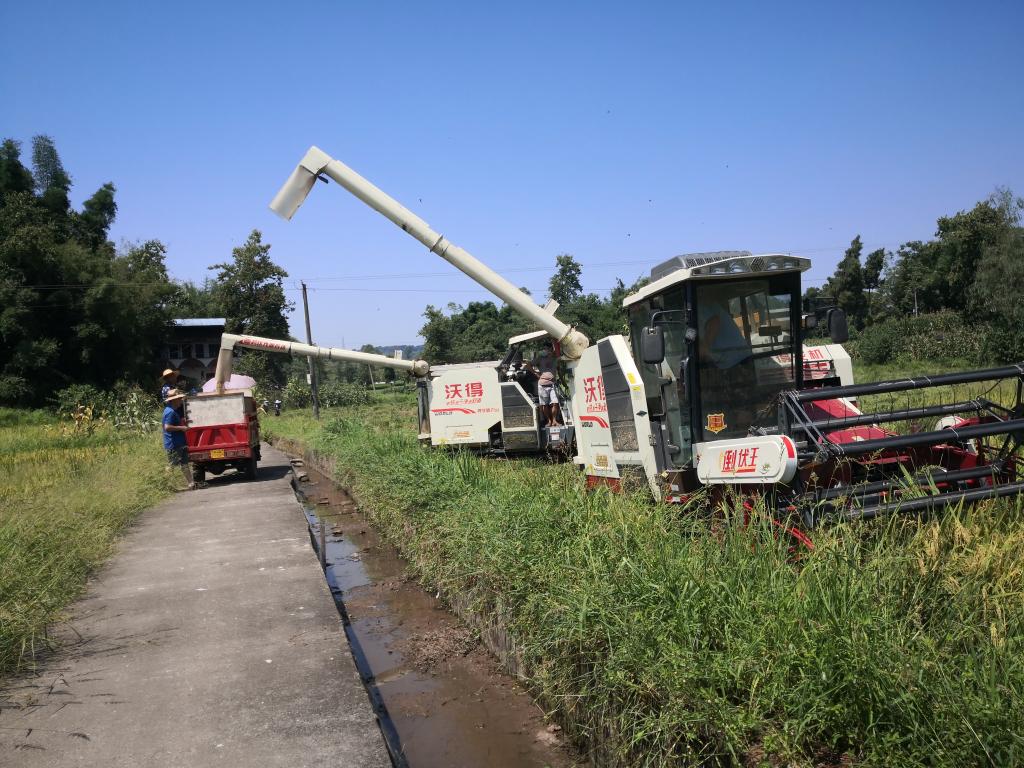 今年秋收时节,重庆合川区云门街道凤林村水稻收获现场。(受访者供图)