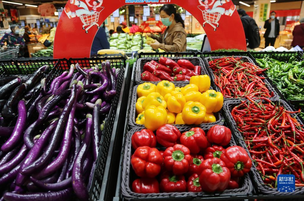 2022年11月9日,顾客在江苏省无锡市一家超市内选购蔬菜。新华社发(还月亮 摄)