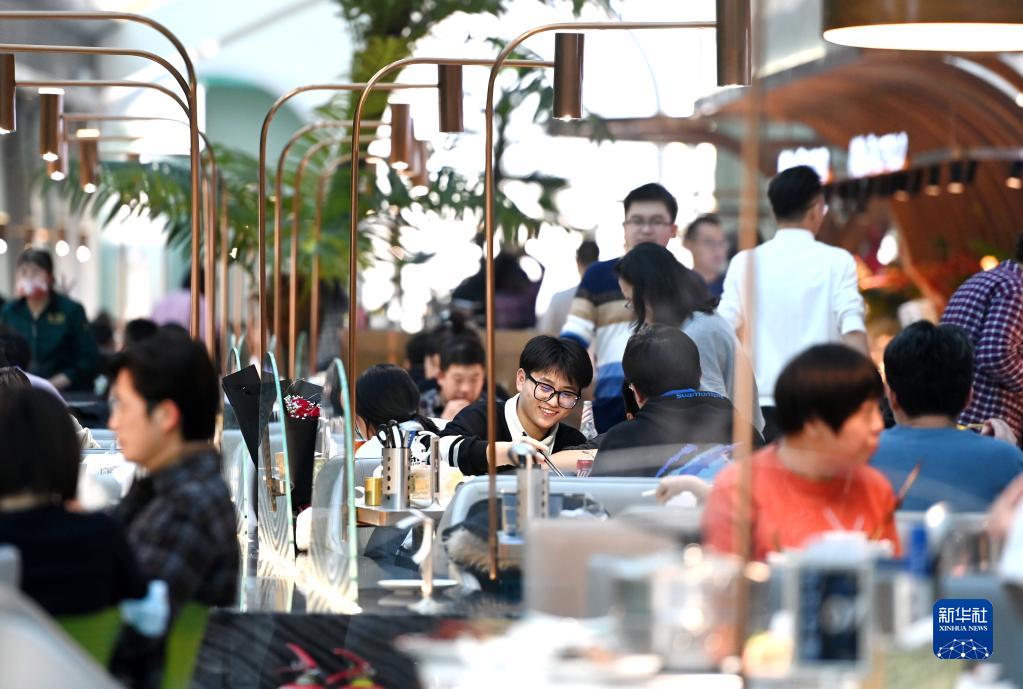 2022年12月31日,顾客在天津恒隆广场一家自助餐厅内用餐。新华社记者 赵子硕 摄