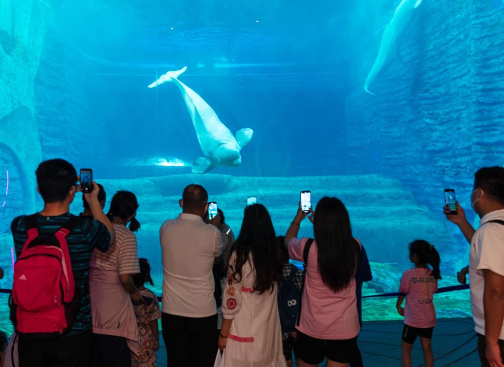 图为游客在海南三亚亚特兰蒂斯酒店水族馆参观游玩。海南旅文厅供图