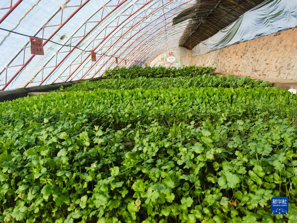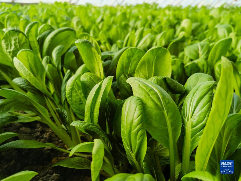 地处戈壁深处的北部战区陆军某边防旅清河口边防连蔬菜大棚内绿意盎然(1月27日摄)。 新华社发(张祥 摄)