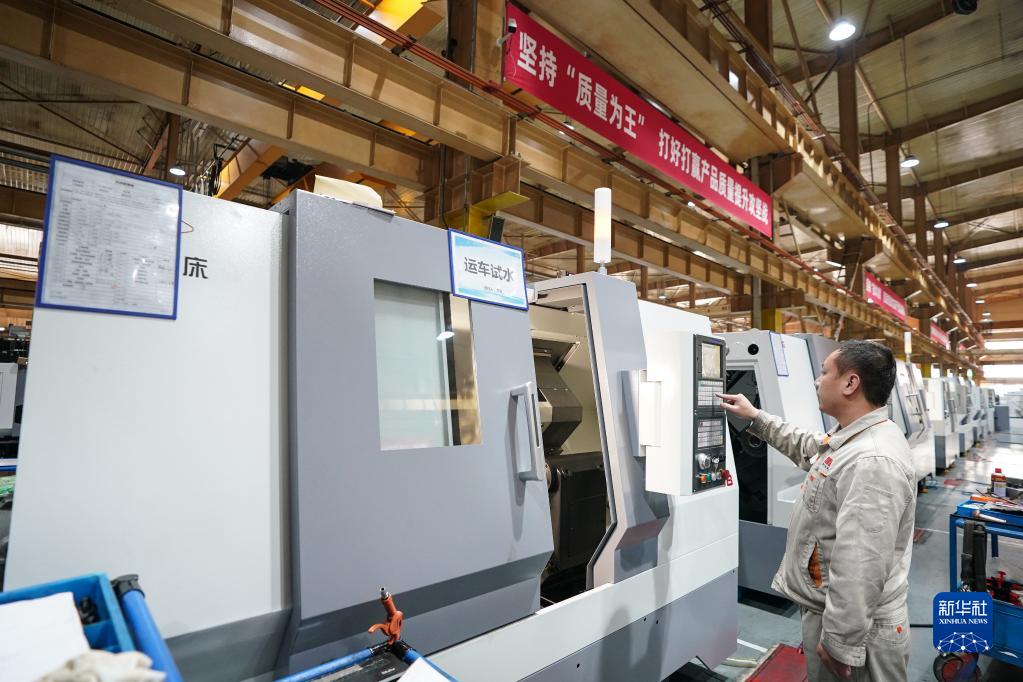 通用技术集团沈阳机床的工人在车间工作(2月14日摄)。新华社记者 潘昱龙 摄