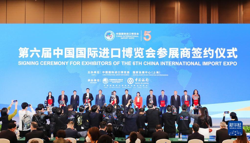 2022年11月6日,2022年中国国际进口博览会参展商联盟大会在上海举行。这是在大会期间进行的第六届进博会参展商签约仪式。新华社记者 方喆 摄