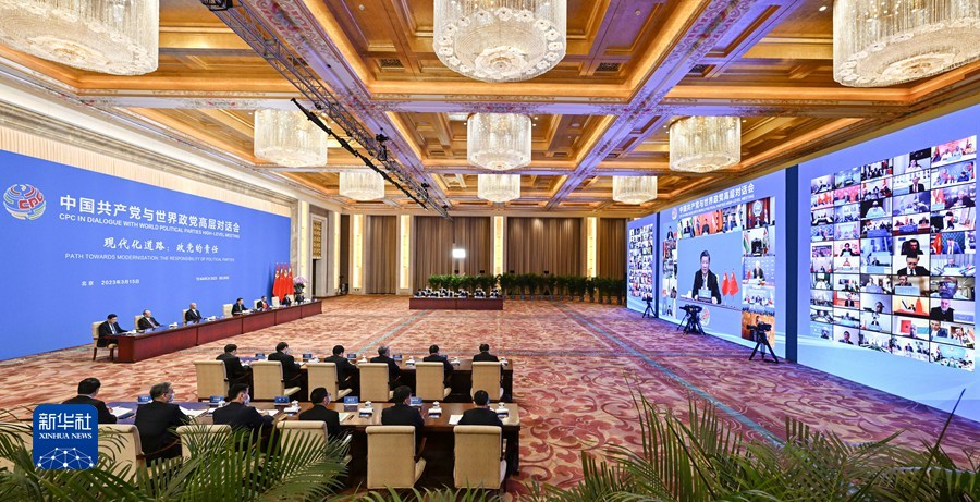 中国共产党与世界政党高层对话会以“现代化道路:政党的责任”为主题,来自150多个国家的500多个政党和政治组织的领导人出席会议。