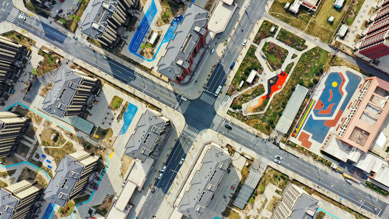 雄安新区容西片区内的街道和公园(2023年3月31日摄,无人机照片)。新华社记者 牟宇 摄