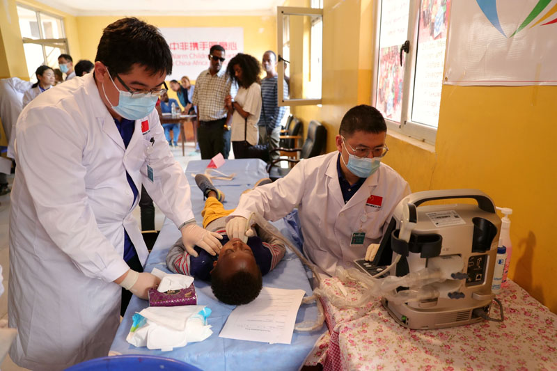中国驻埃塞俄比亚大使馆同埃塞第一夫人办公室官员共同走访了埃塞首都亚的斯亚贝巴的一所福利院,并向福利院70余名孤儿和残疾儿童捐赠文具、健康用品、营养品等,第24批中国援埃塞医疗队进行了现场体检义诊。埃塞卫生部国务部长德雷杰·杜格玛说,中国政府一直在各方面帮助埃塞俄比亚,“我们非常感谢中国政府给埃塞俄比亚孤儿和弱势儿童提供的支持,希望进一步加强合作”。