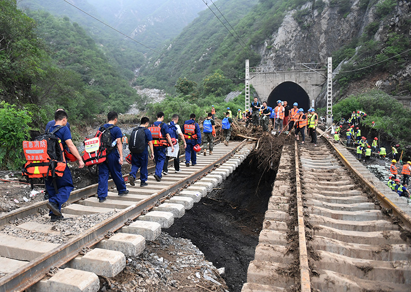 滂沱大雨中,门头沟、房山、昌平……北京相关部门、铁路部门、驻京部队、武警、消防官兵、地方百姓齐心协力,展开了一场争分夺秒的大救援。