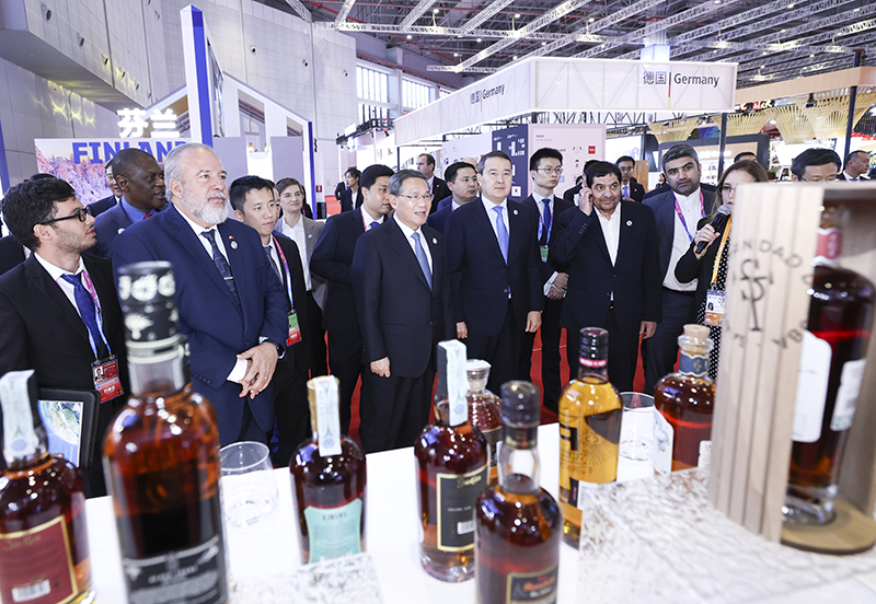 开幕式前,李强参观了企业展。开幕式后,李强同与会外国领导人共同巡馆。