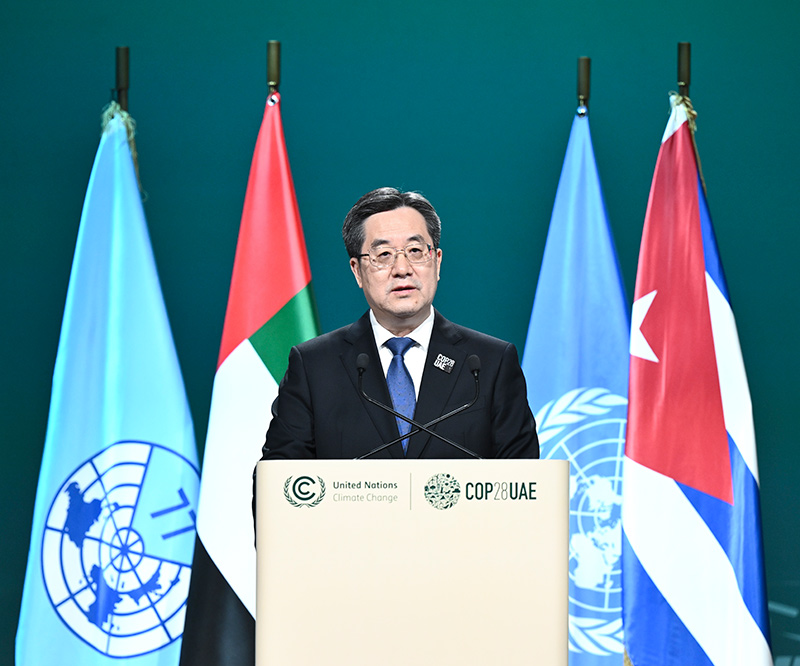 12月2日,习近平主席特别代表、中共中央政治局常委、国务院副总理丁薛祥出席在迪拜举行的“77国集团和中国”气候变化领导人峰会并发表致辞。新华社记者 燕雁 摄