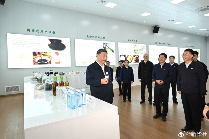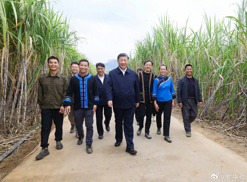 14日下午,习近平总书记在广西来宾市考察调研。他先后来到来宾市国家现代农业产业园黄安优质“双高”糖料蔗基地和东糖凤凰有限公司,了解甘蔗良种繁育、种植收成、糖产业发展等情况。(文字记者:林晖;摄影记者: 谢环驰、王晔、燕雁、岳月伟)