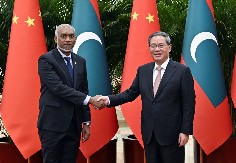 1月11日上午,国务院总理李强在北京人民大会堂会见来华进行国事访问的马尔代夫总统穆伊兹。新华社记者 殷博古 摄