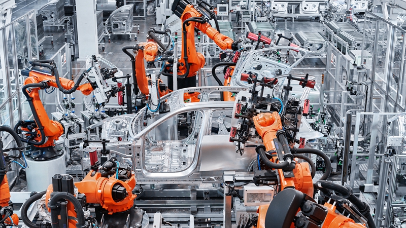 近日,在蔚来合肥第二生产基地,记者看到8万平方米的车身车间里700多台橙色机器人各司其职。涂装车间设有“魔方”车辆存取平台,改变以往涂装车间按订单顺序涂装颜色、不停更换喷枪的方式,把平面库存优化为立体空间,设置6层408个车位,减少生产停顿。总装车间用“飞地”自动装配岛,将前后风挡、玻璃车顶、仪表台、尾门四大件集成在同一个全自动装配岛完成安装。