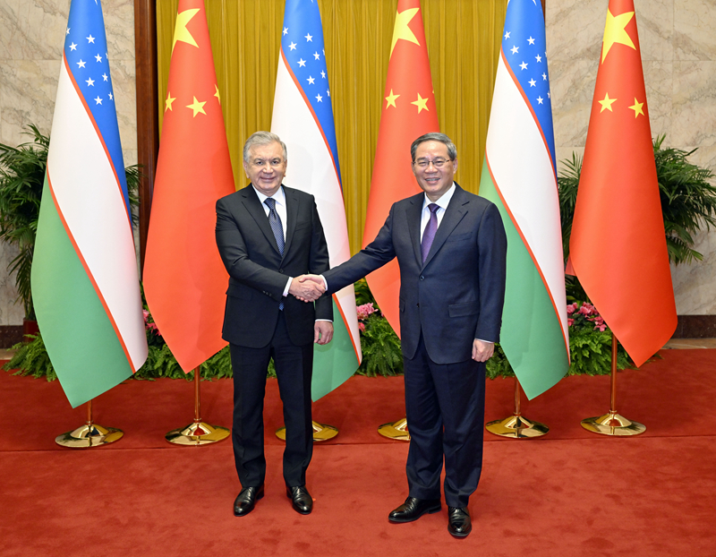 1月24日上午,国务院总理李强在北京人民大会堂会见来华进行国事访问的乌兹别克斯坦总统米尔济约耶夫。新华社记者 殷博古 摄