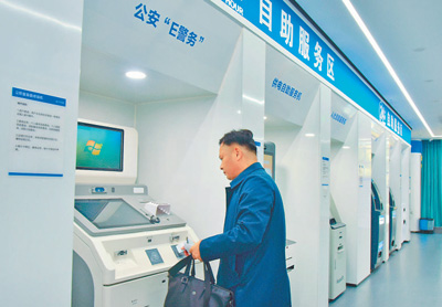 江苏省如皋市市民在当地行政审批局推出的“24小时自助服务区”办理业务。 吴树建摄(影像中国) |