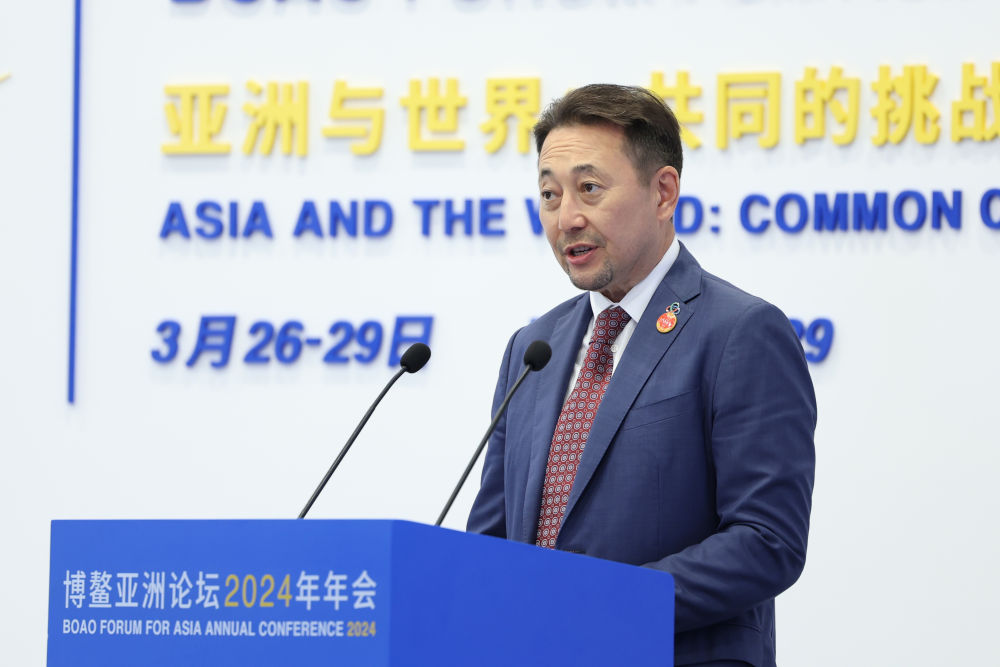 2024年3月28日,亚洲相互协作与信任措施会议秘书长凯拉特·萨雷拜在博鳌亚洲论坛2024年年会“全球安全倡议:破解安全难题 共促世界和平”分论坛上发言。新华社记者 张丽芸 摄