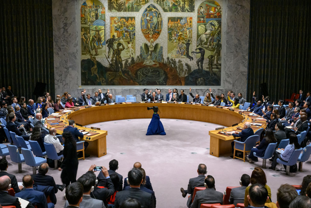 2023年11月15日,在位于纽约的联合国总部,安理会就涉巴以局势的决议草案进行表决。新华社发(联合国供图/洛伊·费利佩摄)