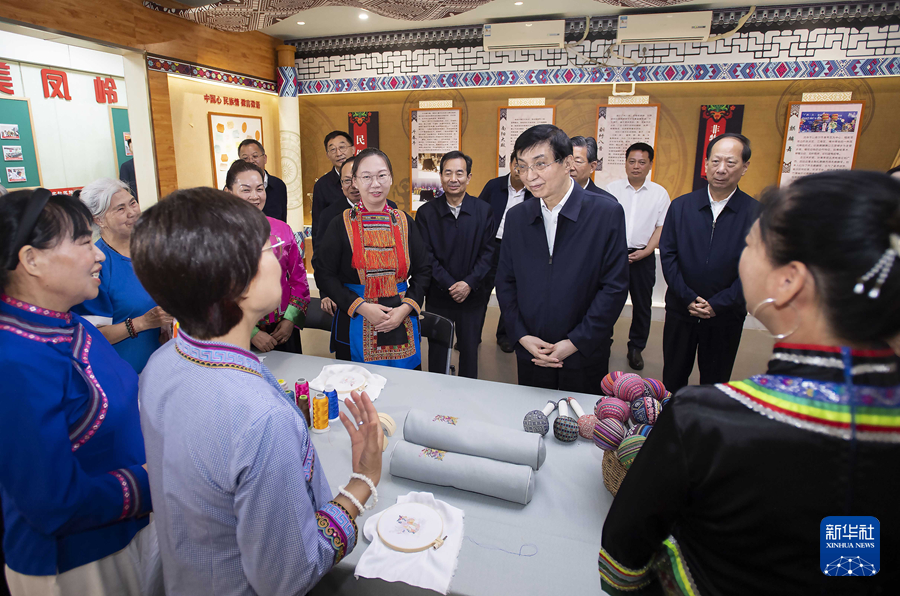 5月6日至8日,中共中央政治局常委、全国政协主席王沪宁在广西调研。这是5月8日,王沪宁在南宁市青秀区凤岭北社区“石榴籽”家园同群众交流。新华社记者 李涛 摄