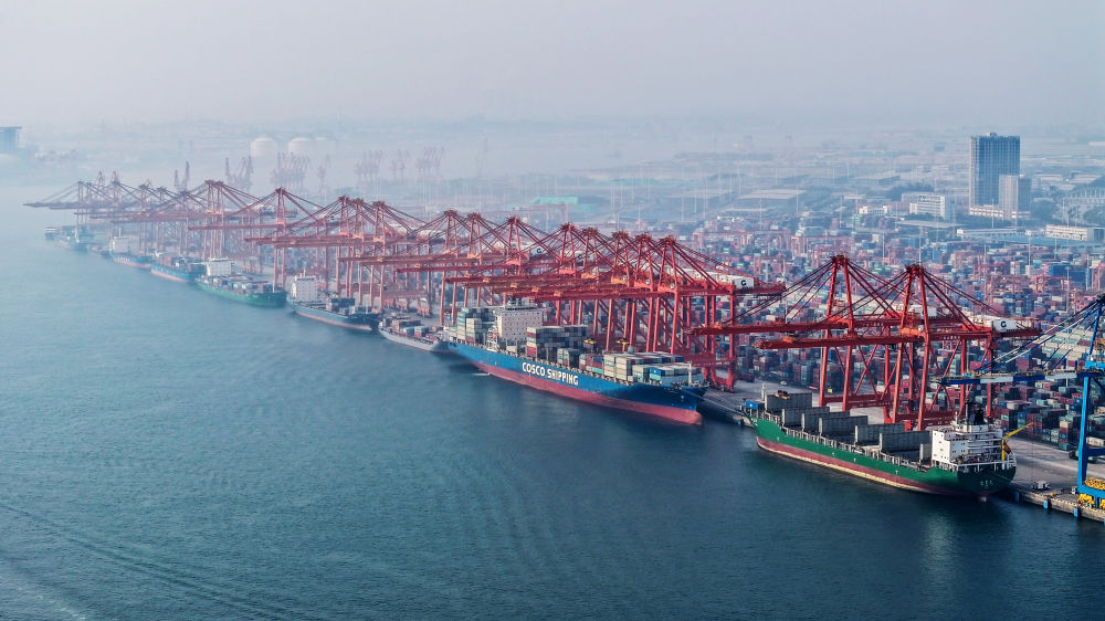 在广西钦州港码头,多艘海轮在排队卸货(无人机照片,2024年3月28日摄)。新华社记者 张爱林 摄
