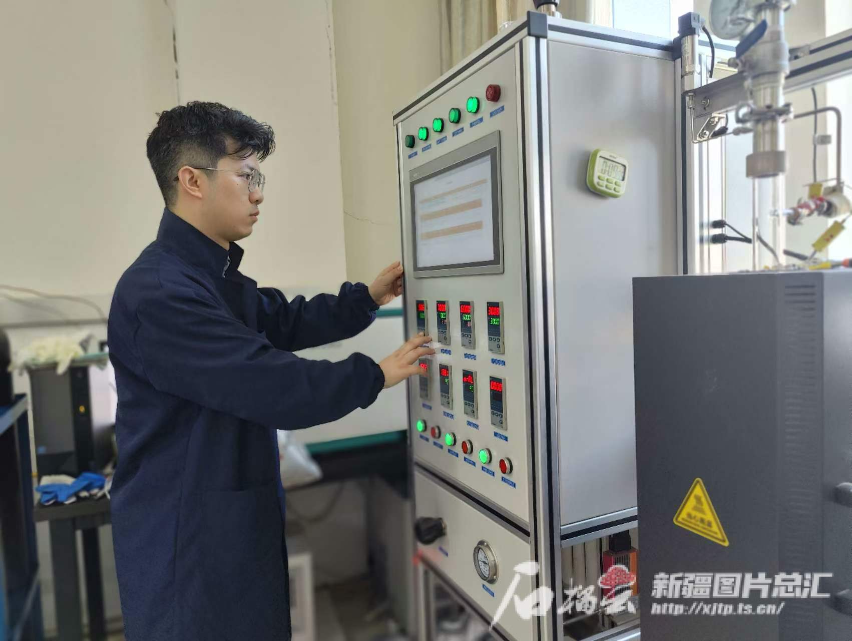 5月22日,中国科学院新疆理化技术研究所副研究员曾喆在实验室内调整生物质热解温度条件。图片由本人提供