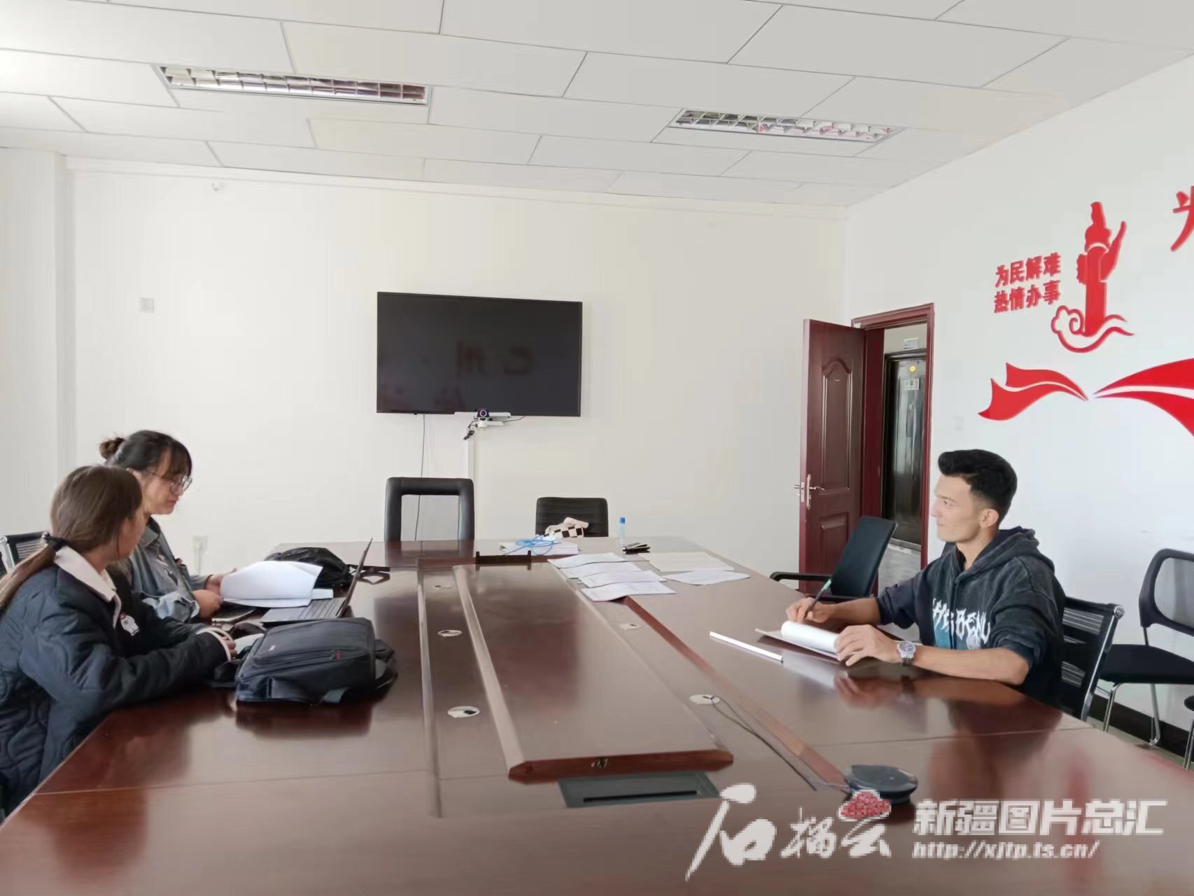 近日,和静县人力资源和社会保障局干部对米然·阿布力米提进行定期回访,宣传就业创业政策,了解其创业情况,鼓励其吸纳更多就业。图片由和静县人社局提供