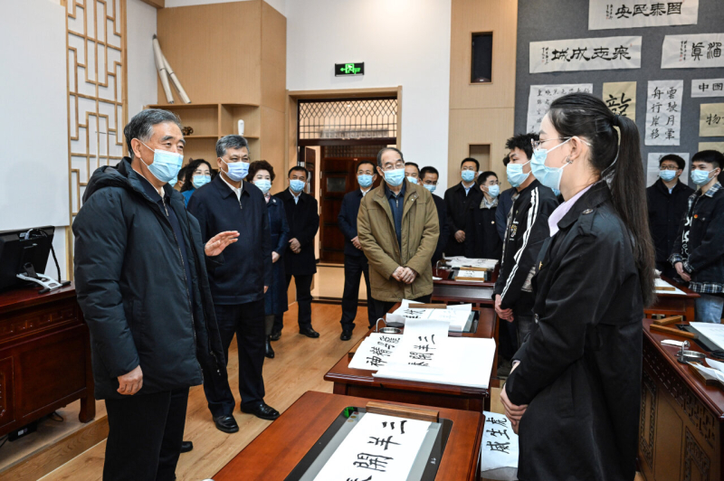 3月18日至22日,中共中央政治局常委、全国政协主席汪洋在新疆调研。这是3月19日,汪洋在新疆师范大学就推动中华民族共同体研究、铸牢中华民族共同体意识进行调研。新华社记者 饶爱民 摄