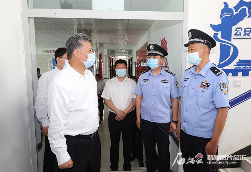 5月17日,自治区党委书记马兴瑞在和硕县特吾里克镇派出所听取维稳工作汇报。天山网-新疆日报记者 崔志坚摄