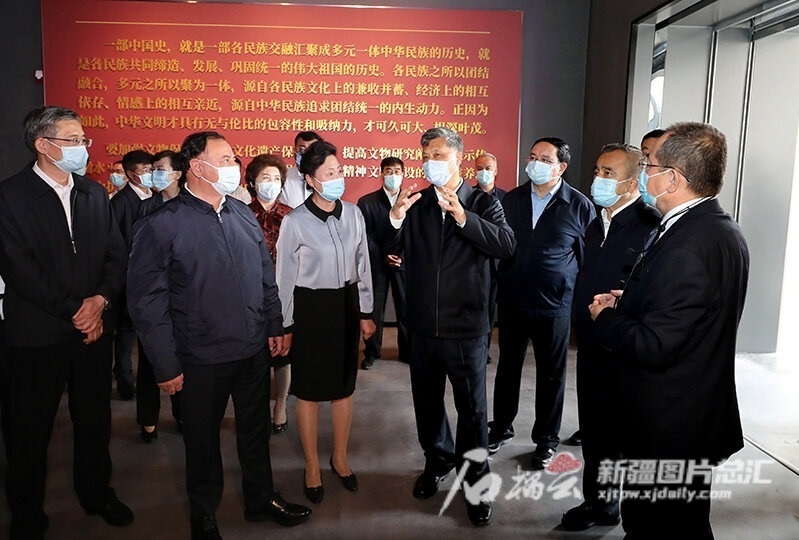 马兴瑞在调研中指出,文物是最好的见证,历史文化遗产承载着中华民族的基因和血脉。这些文物充分证明了新疆自古就是中国领土不可分割的一部分,是多民族聚居和多文化多宗教并存地区的历史事实。我们要以史为鉴、以史鉴今,提高文物研究阐释和展示传播水平,扎实开展好干部教育、青少年教育、社会教育,引导广大干部群众深刻感悟在中国统一多民族国家的历史演进中,新疆各族人民同全国人民一道共同开拓中国的辽阔疆土,共同缔造多元一体中华民族大家庭的历史过程,有形有感有效做好铸牢中华民族共同体意识工作,使各族群众对伟大祖国和中华民族的情感纽带更加牢固,使民族团结的思想基础更加坚实,更好凝聚人心、汇聚力量,建设美丽新疆。