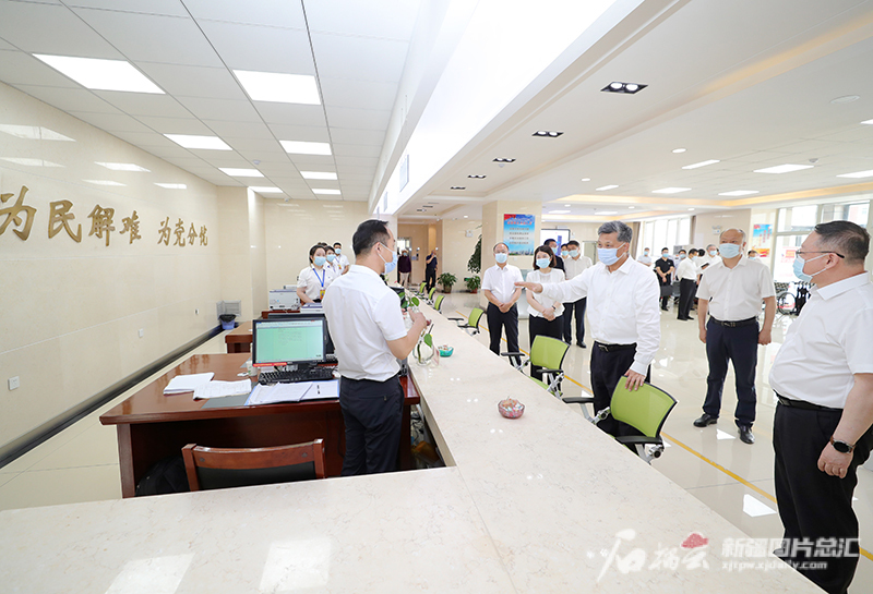 6月15日,自治区党委书记马兴瑞在自治区人民群众信访服务中心接访大厅,听取自治区信访部门接待群众来访和网上信访情况汇报。天山网-新疆日报记者 崔志坚 摄