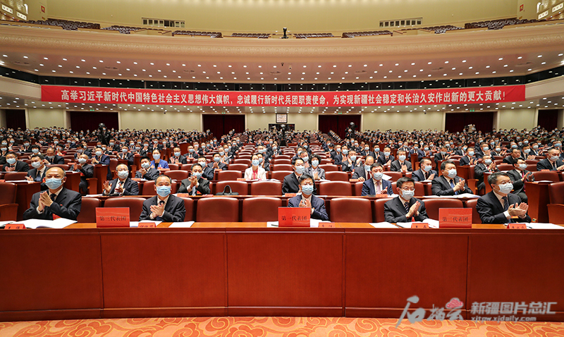 6月15日,中国共产党新疆生产建设兵团第八次代表大会在新疆人民会堂开幕。天山网-新疆日报记者 崔志坚 摄