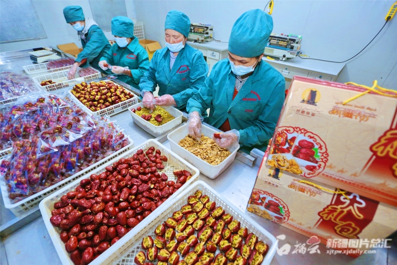 在延长加工链条方面,新疆果业集团针对红枣、核桃产品加工等薄弱环节,在全疆引进、新建加工生产线70余条。新疆(阿克苏)农产品交易中心的5条油炸枣生产线,自投产以来每日可加工红枣10吨左右。