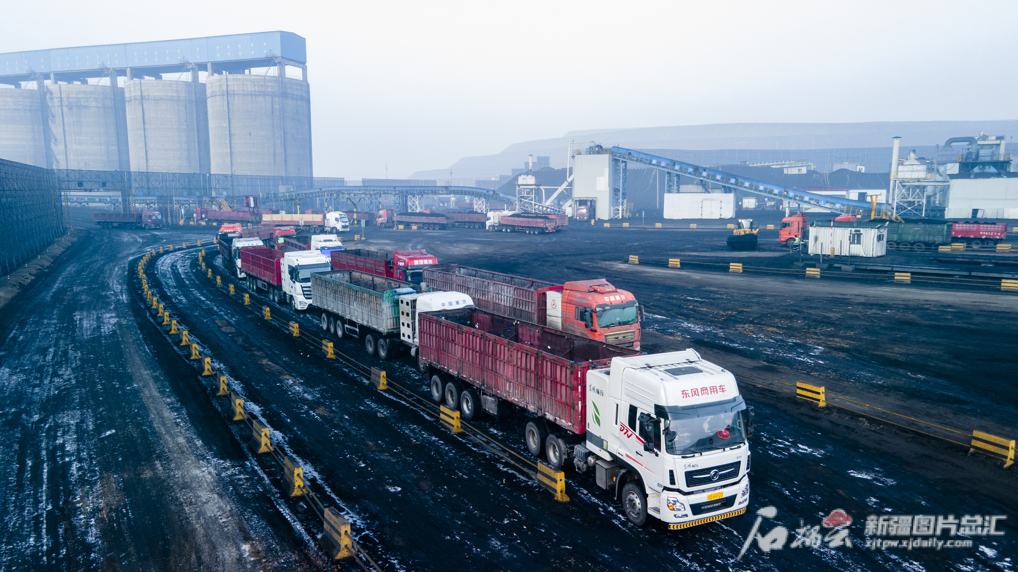 2月17日,国家能源集团新疆能源有限责任公司准东露天煤矿汽车装运繁忙。马腾摄