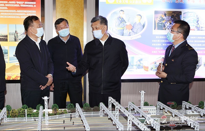 3月23日,自治区党委书记马兴瑞在伊犁哈萨克自治州调研。这是马兴瑞来到霍尔果斯铁路口岸站,详细了解班列运行、运力提升、通关服务保障等工作。 刘成刚摄